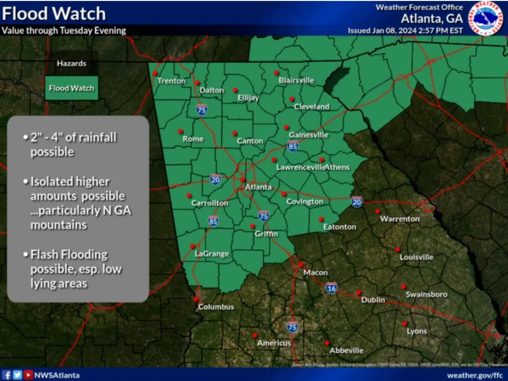 The National Weather Service in Peachtree City GA has issued a Flood Warning for the Chattooga River at Summerville.