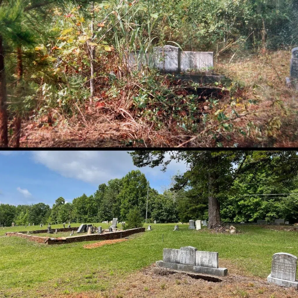(Before and after work done on Lindale Cemetery: Photos by Tim Reynolds)