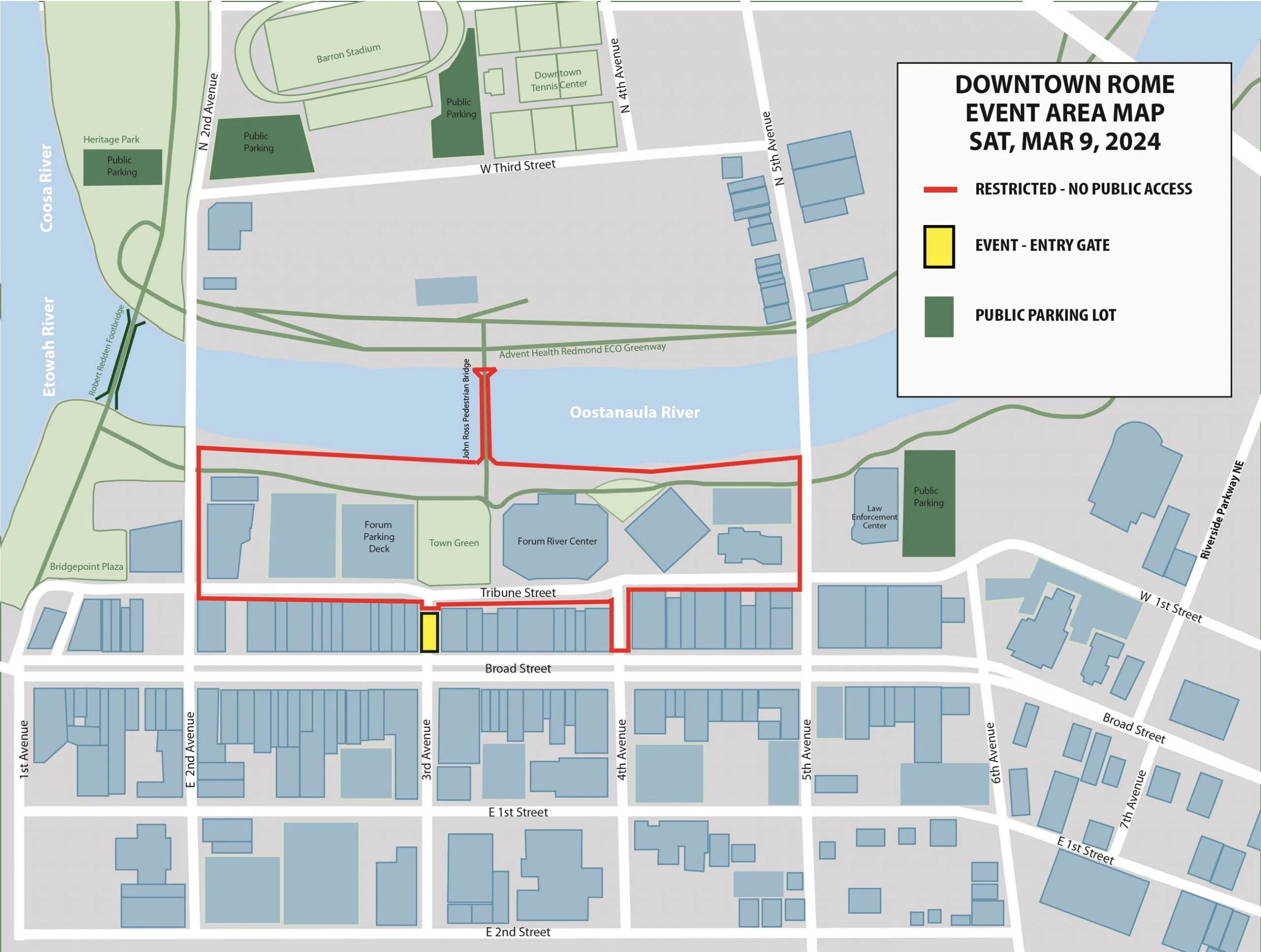 The Forum River Center is located at 301 Tribune Street in downtown Rome, Georgia. Rome’s Town Green is located just outside of The Forum, between the center and the adjacent parking deck. Tickets to the event are available in advance through the campaign’s website.