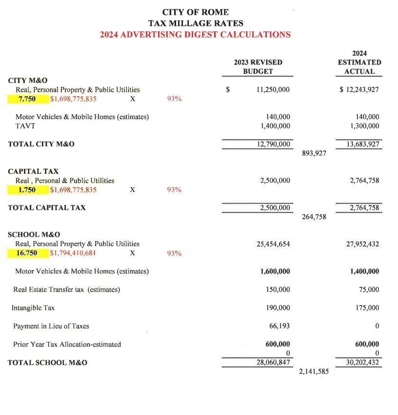 The rate for Rome City Schools would go from 16.85 to 16.75.