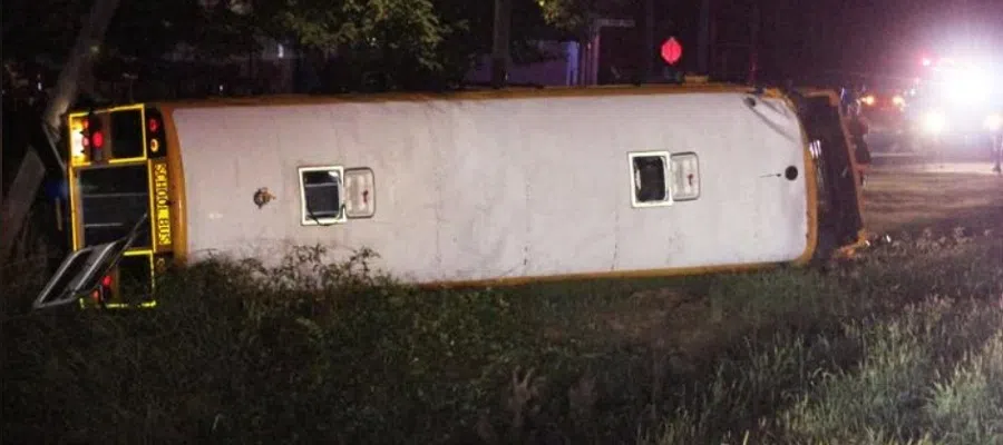 According to Ryanna Morgan, who was following the bus, a small silver SUV was close behind the bus when she saw the bus begin to swerve before it lost control and rolled multiple times, coming to a rest on its side against a utility pole on the west side of the highway.