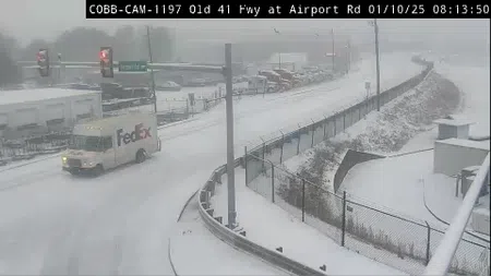 I-75 and Highway 41 are snow covered as shown on GDOT cameras in Emerson and Kennesaw