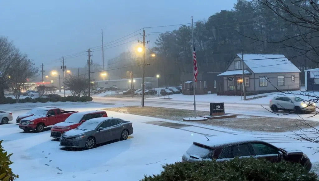 Alan Sanders at WBHF Radio reported that snow is falling in downtown Cartersville. WRGA also received reports from listeners in Acworth that snow is piling up. Marcus Warren from Bartow County EMA recommends the public to stay at home.