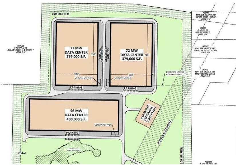 Atlas Development Inc. is seeking a rezoning from Suburban Residential to Heavy Industrial use. The proposed Dixon Data Center campus would include high security server buildings with advanced climate control, operational support facilities, an electrical substation and other utility infrastructure and on-site water cooling systems.