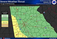 · Storms will reach west Georgia between 11 PM and 2 AM, then move east overnight. By 10 AM Wednesday the severe risk will end. **see timing graphic below for details**