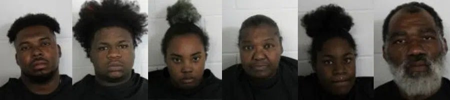 36-year old Geoborus Markale Harper, 19-year old Ja’mir Tyree McKee, 18-year old Jameria Nakayla Williams, 57-year old Valeria Regina Harper, 23-year old Zarria Marchae Bryant, and 51-year old Tyrone Eldridge Dublin are charged with possession of more than an marijuana, possession of marijuana with the intent to distribute, two counts of possession of Schedule I controlled substance with the intent to distribute, and possession of drug-related objects.