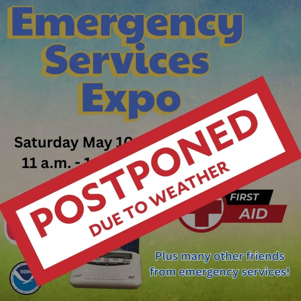 Saturday, May 10, 2025–9:40 a.m. -News Release- We regret to announce that the Emergency Services Expo is postponed for today (May 10, 2025) due to weather. Look for a follow-up date soon!