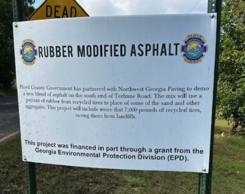 “This is a rubber tire smart mix grant that we acquired from the Georgia Environmental Protection Division,” said Floyd County Manager Jamie McCord. “It will cover the cost of adding the recycled tires. We will be recycling 800 tires per lane mile of asphalt that goes into place.”