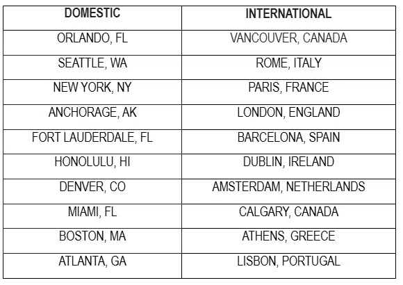 These destinations are based on AAA booking data for the Independence Day travel period. Cruises, beaches, and fireworks are the primary motivators for travelers heading to these cities. Alaska cruises are in peak season, Florida and Hawaii are in high demand for their resorts and attractions, and New York and Boston host two of the most popular fireworks shows in the nation.