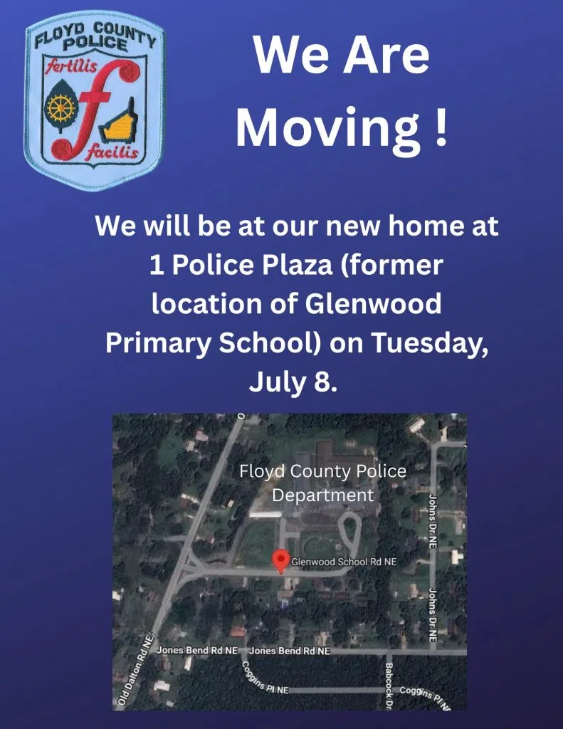 Once again, Floyd County Police will be in their new home in the former Glenwood Primary School building at 1 Police Plaza on Tuesday.