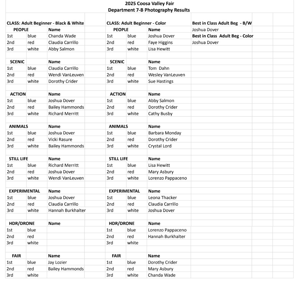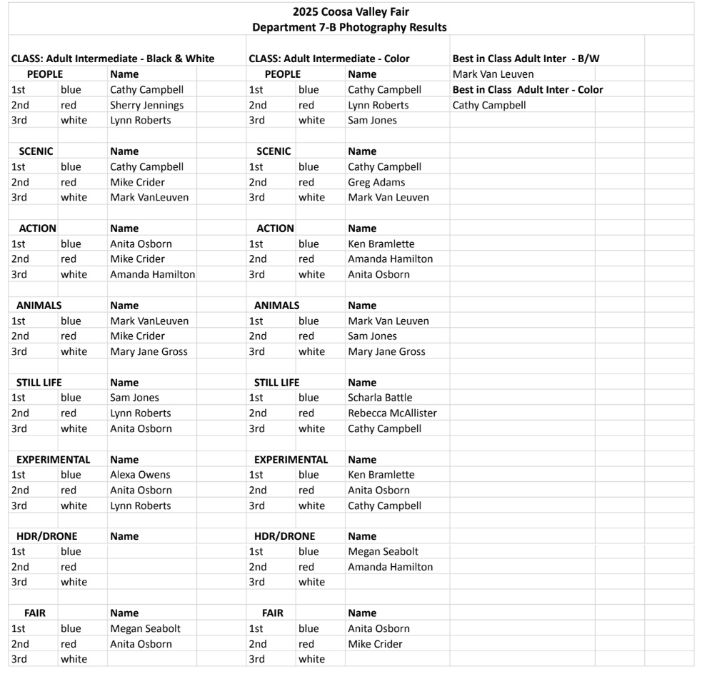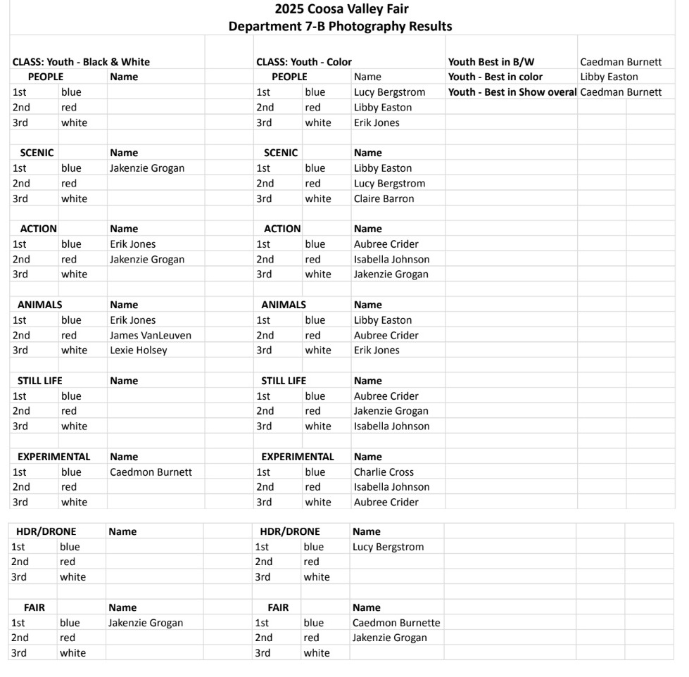 2026 Coosa Valley Fair Photography winnersPosted on October 1, 2025 by Reporter Wednesday, October 1, 2025–8:20 a.m. -Staff reports- The winners of the photography competition at the Coosa Valley Fair have been announced.