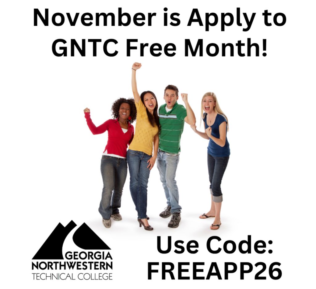 Georgia Northwestern Technical College (GNTC) will host a Free Application Month throughout November to help those who are seeking to enroll in the spring semester.