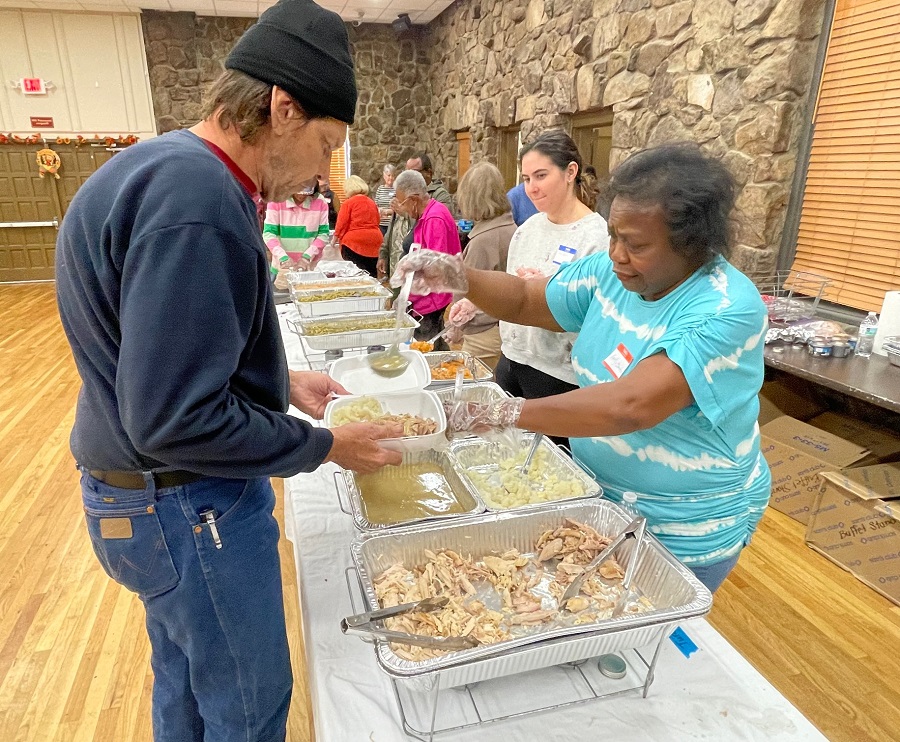 Volunteers began serving the free traditional Thanksgiving dinner at 11 a.m. Thursday at the Rome Civic Center on Jackson Hill.