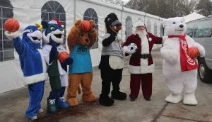 Santa was also joined by several friendly mascots will host a festive Mascot Party with the first 600 kids receiving a basketball, football, or soccer ball.