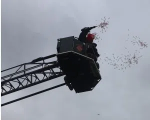 A Rome-Floyd County Fire Department truck was used to drop candy canes that were then collected by kids and their families.