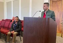 Sunday, March 17, 2024–6:16 a.m.-David Crowder, WRGA News-Pictured: Johnny Burrell (right) shows pictures of the damage caused when a vehicle struck his home back in December during a recent Rom...